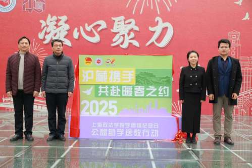 高志刚、董贞洁、程方雄等领导与往届服务西藏自治区日喀则市“西部计划”志愿者代表杨明壕共同为“2025年新利18官方客服“3·5”学雷锋纪念日公益助学送教行动”揭幕。从黄浦江畔到雪域高原,这场跨越山海的教育公益援助事业正式启航。