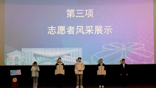 在庄严的国歌声中,出征仪式正式拉开帷幕。校团委负责人介绍了第八届进博会志愿者组织招募、岗前培训及岗位分配等工作总体情况。在志愿者风采展示环节中,五位志愿者代表以《我与进博》的故事分享了他们与进博会的珍贵记忆,展现了上政“小叶子”以专业特长服务国家盛会的成长轨迹。随后播放的《直击进博》现场连线视频,从多角度呈现了志愿者们的精神风貌与筹备成果,激励新一届志愿者以昂扬姿态迎接挑战。