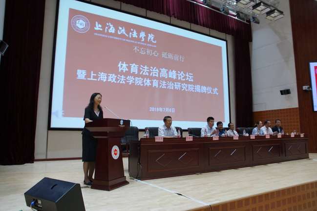 7月6日,我校在中国—上海合作组织国际司法交流合作培训基地207会议室 举办体育法治高峰论坛暨新利18官方客服体育法治研究院揭牌仪式。活动由新利18官方客服胡继灵副校长主持。国家体育总局政法司副司长李志全、 上海市体育局副局长罗文桦、新利18官方客服副校长关保英教授、南京体育学院副校长李江教授、中国法学会体育法学研究会副会长王小平教授、中国法学会体育法学研究会常务副会长于善旭教授、上海市法学会张志军主任参加本次活动。此外参加本次活动的还有来自政府机关、各高校科研院所及法律实务部门等嘉宾共80余名。