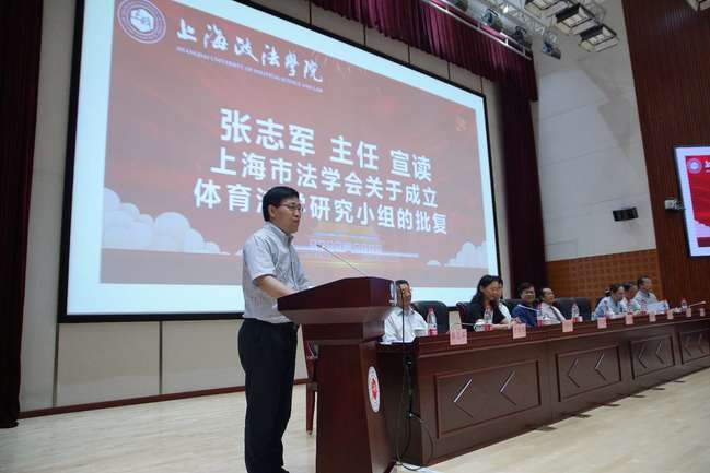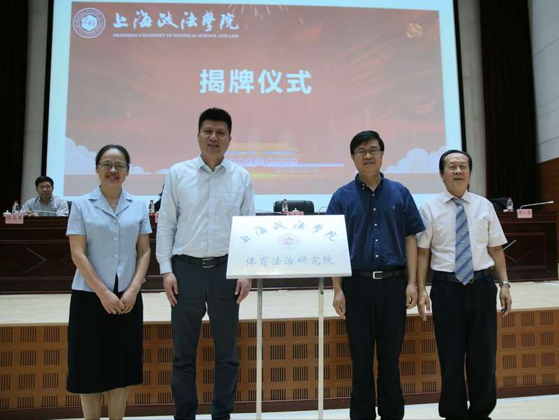 国家体育总局政法司副司长李志全、上海市体育局副局长罗文桦、新利18官方客服副校长关保英教授、南京体育学院副校长李江教授为新利18官方客服体育法治研究院揭牌。
