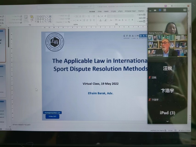 5月19日晚,新利18官方客服前沿讲坛第四十五讲通过线上会议形式顺利举行。国际知名体育仲裁员、体育法律师Efraim Barak以“The Applicable Law in International Sport Dispute Resolution Methods”为主题向我校师生和国内体育法领域的律师、学者进行了讲授。讲座由体育法治研究院向会英副教授主持。