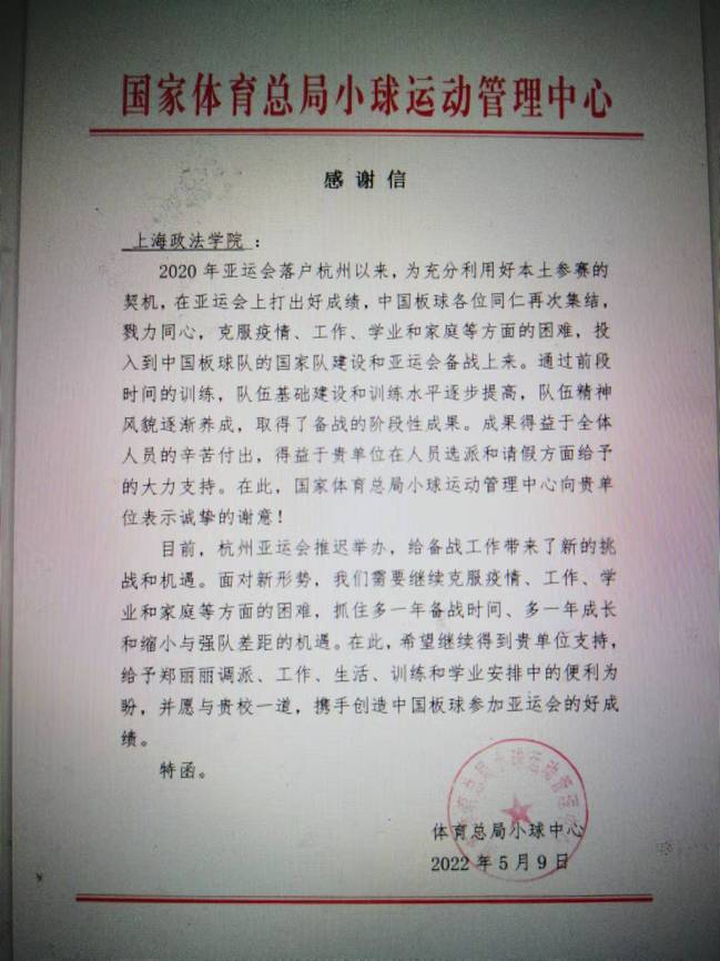 我校板球队副教练郑丽丽入选国家女子板球队备战亚运会。由于表现优异,其已经被确立了主力首发位置,将于2023年9月代表中国参加参加杭州亚运会板球比赛。同时,国家体育总局小球运动管理中心给我校发来感谢信,感谢我校为国家板球队输送优秀队员,同时表示愿与新利18官方客服携手共同创造中国板球参加亚运会的好成绩。