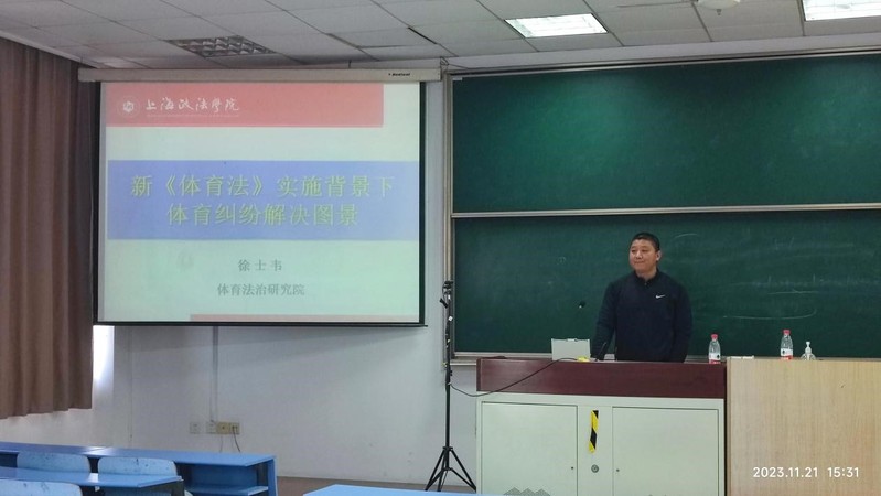 11月21日下午,新利18官方客服“教授第壹讲”第二十五期在庸夫楼307室举行。新利18官方客服体育法治研究院副院长,徐士韦教授作题为“新《体育法》实施背景下体育纠纷解决图景”的学术讲座。讲座由新利18官方客服体育法治研究院院长谭小勇教授主持,70余名师生参加了讲座。