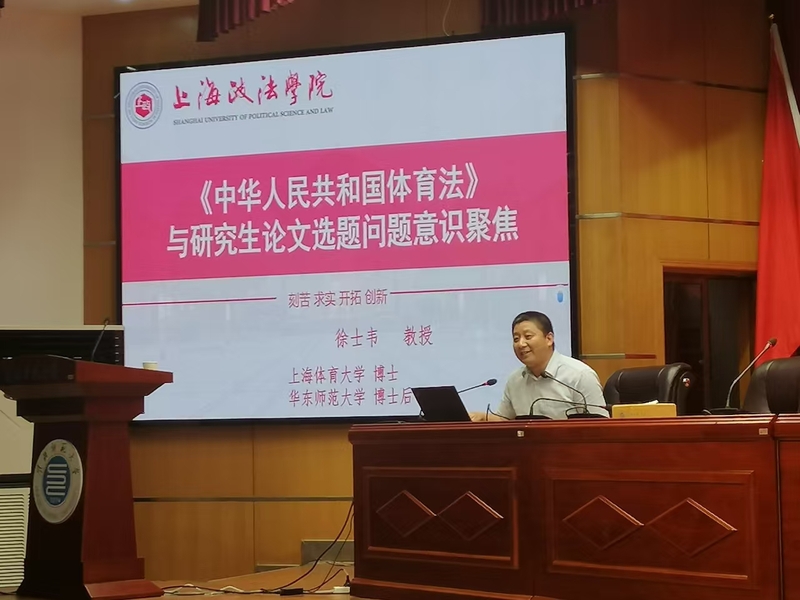 讲座中,徐士韦教授首先从《体育法》修订的背景及现实意义讲起,详细讲述了此次《体育法》的修订以问题为导向,直面回应新时代体育事业发展中迫切需要解决的问题,以及修订后的《体育法》对保障体育事业健康发展和建设体育强国的现实意义。其次,围绕《体育法》修订前后的结构变化、内容变化、新增章节等内容进行了解读。最后,结合《体育法》修订中关注的问题和领域,通过对相应条款内容的深入解读,旨在为研究生的论文选题带来启示和参考。