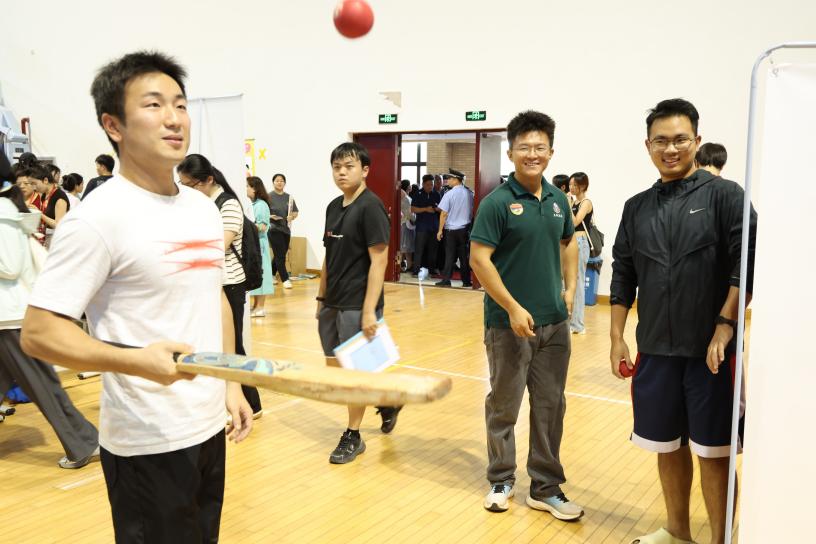 在趣味体验中,我校的板球队队员在现场指导新生们挥板扬拍,感受我校板球特色名片的独特魅力。