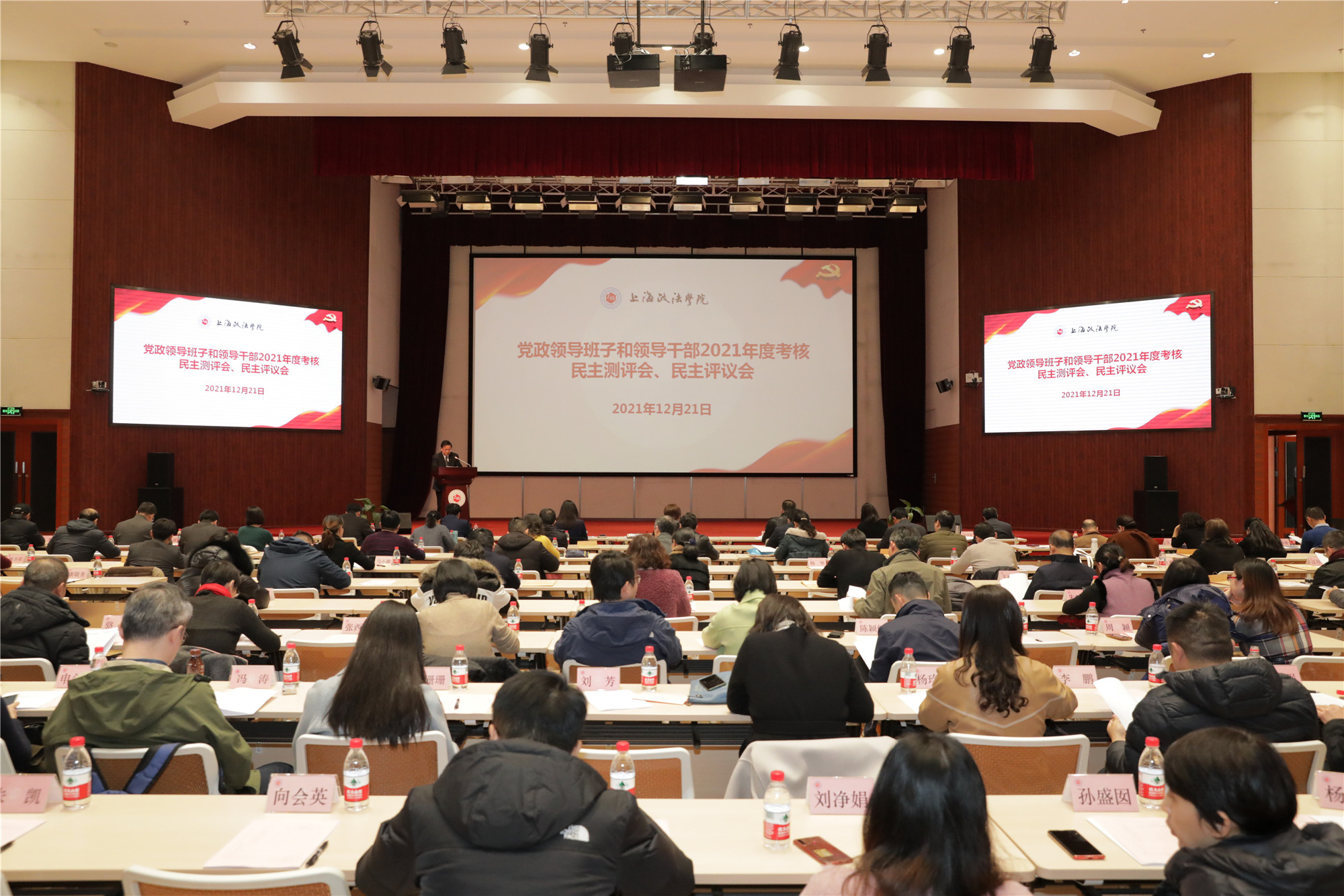 12月21日下午,学校党政领导班子和领导干部2021年度考核民主测评会、民主评议会在上合基地207会议室召开。学校党政领导出席会议,两委委员、各部门(单位)主要负责人、教代会正式代表、党外人士代表、离退休代表、学生代表共计140余人参加会议。