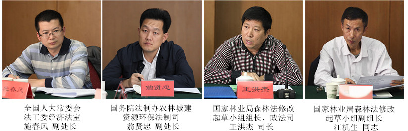 中国法学会环境资源法学研究会副会长、天津大学法学院院长孙佑海教授、武汉大学环境法研究所王树义教授,最高人民法院行政庭梁凤云审判长,中南林业科技大学法学院院长周训芳教授,南京林业大学法学院副院长张红霄教授,浙江农林大学法政学院法律系主任马永双教授,中央民族大学法学院张步峰教授,环境资源法学研究会理事、北京林业大学法学系杨朝霞副教授,中国政法大学民商经济法学院马燕副教授,北京林业大学法学系副主任魏华副教授,吉林森工集团资源经营部姜荣春处长,北京中林资产评估有限公司景谦平副总经理,中国林产品公司沈北灵副总经理,广西林业集团法律顾问涂方祥等专家学者参加会议。环境资源法学研究会副会长、中国人民大学法学院周珂教授提交了书面修改意见。