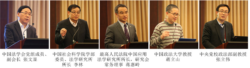 学术研讨部分分为主旨演讲和学术报告两个环节。主旨演讲环节由江苏省人大常委会党组成员、副主任,研究会副会长公丕祥同志主持。中国法学会党组成员、副会长、学术委员会主任张文显,中国法学会副会长、中国社会科学院学部委员、法学研究所所长李林,最高人民法院中国应用法学研究所所长蒋惠岭,中国政法大学教授蒋立山以及中央党校政法部副教授张立伟,先后围绕“十八大以来党在法治领域的理论创新”“中国特色社会主义法治理论的形成”“我国宪法法律实施的特色化理论分析”“全民守法、建设法治社会”“党内法规与国法有机衔接”等问题发表观点。