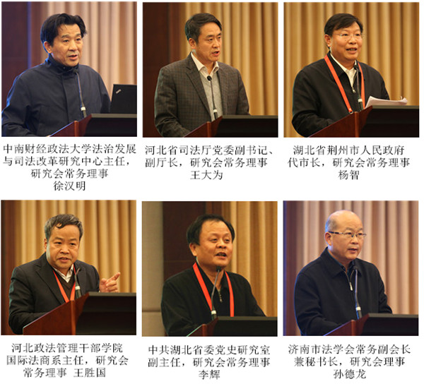 学术报告环节由国家行政学院法学部主任、教授,研究会副会长胡建淼同志主持。中南财经政法大学法治发展与司法改革研究中心主任、湖北法治发展战略研究院院长,研究会常务理事徐汉明;河北省司法厅党委副书记、副厅长,研究会常务理事王大为;湖北省荆州市人民政府代市长,研究会常务理事杨智;河北政法管理干部学院国际法商系主任,研究会常务理事王胜国;中共湖北省委党史研究室副主任,研究会常务理事李辉及济南市法学会常务副会长兼秘书长,研究会理事孙德龙等6位专家围绕“董必武法学方法论”“董必武法学思想与中国特色社会主义法治实践”“董必武法学思想与中国特色社会主义法治理论”“董必武法学思想的基本方法论”“董必武法制思想与实践对全面依法治国的重要启示”“习近平法治思想对党的领导理论的新发展”等问题作了精彩的学术报告。