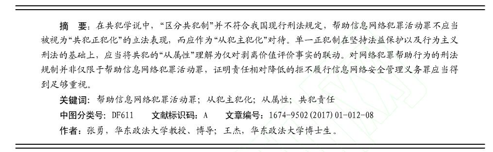 帮助信息网络犯罪活动罪的_从犯主犯化_及共犯责任_张勇