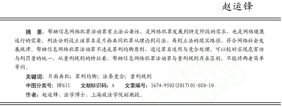 帮助信息网络犯罪活动罪的立法依据与法理分析_赵运锋