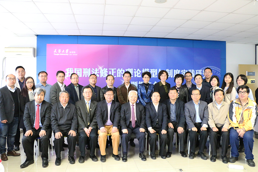 北京师范大学刑事法律科学研究院特聘教授、中国人民大学荣誉一级教授、中国刑法学研究会名誉会长高铭暄,北京师范大学刑事法律科学研究院院长、中国刑法学研究会会长赵秉志,中国社会科学院国际法研究所所长、研究员、中国刑法学研究会常务副会长陈泽宪,中国人民大学法学院教授、中国人民大学刑法法律科学研究中心执行主任、中国刑法学研究会副会长黄京平,北京大学法学院教授、中国刑法学研究会副会长梁根林,南开大学法学院副院长、教授、天津市法学会刑法学分会会长刘士心,南开大学法学院教授、刑法教研室主任张心向,北京师范大学刑事法律科学研究院院长助理、教授袁彬,中国社会科学院法学研究所刑法研究室副主任、副研究员樊文,中国人民公安大学侦查与反恐怖学院副教授包涵,南开大学法学院副教授王强军,天津师范大学法学院副教授张晶,天津得安律师事务所主任王增强、副主任闫晓菲;天津市委宣传部理论处处长、天津市哲学社会科学规划领导小组办公室主任袁世军,天津大学副校长元英进,天津大学人文社科处处长张俊艳,天津大学法学院院长、教授孙佑海,法学院党委书记杨欢,法学院副院长林卫峰,法学院刑事法律研究中心主任、教授黄太云,法学院刑事法律研究中心执行主任、教授董娟,法学院刑事法律研究中心副主任、副教授于阳以及来自天津市高级人民法院、天津市人民检察院、天津市人民检察院第一分院、天津大学法学院、南开大学法学院、天津师范大学法学院、天津财经大学法学院等单位的专家学者五十余人参加会议。