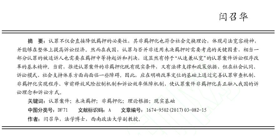 _从速兼从宽_认罪案件非羁押化研究_闫召华
