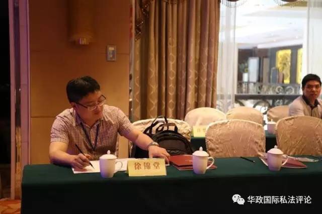 中国国际私法学会副会长、华东政法大学副校长林燕萍教授和华南师范大学法学院院长王涛教授发表了热情洋溢的致辞,中国国际私法学会前沿问题专题研究委员会召集人、华东政法大学杜涛教授和广州法学会航运法研究会会长曾二秀教授分别主持了上午和下午的研讨会。
