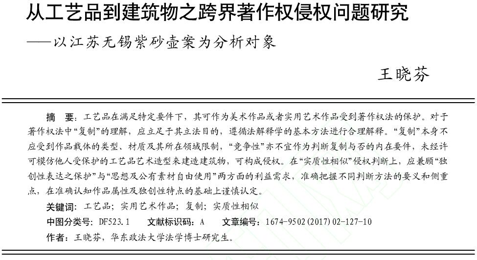 从工艺品到建筑物之跨界著作权侵权_省略_究_以江苏无锡紫砂壶案...