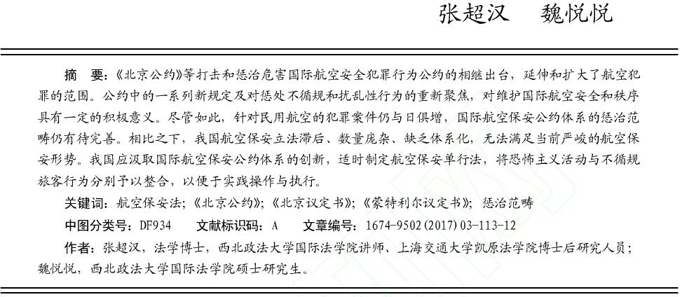 论现代国际航空保安公约体系的惩治范畴_张超汉