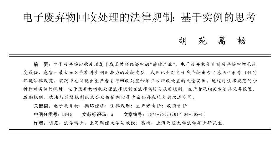电子废弃物回收处理的法律规制_基于实例的思考_胡苑