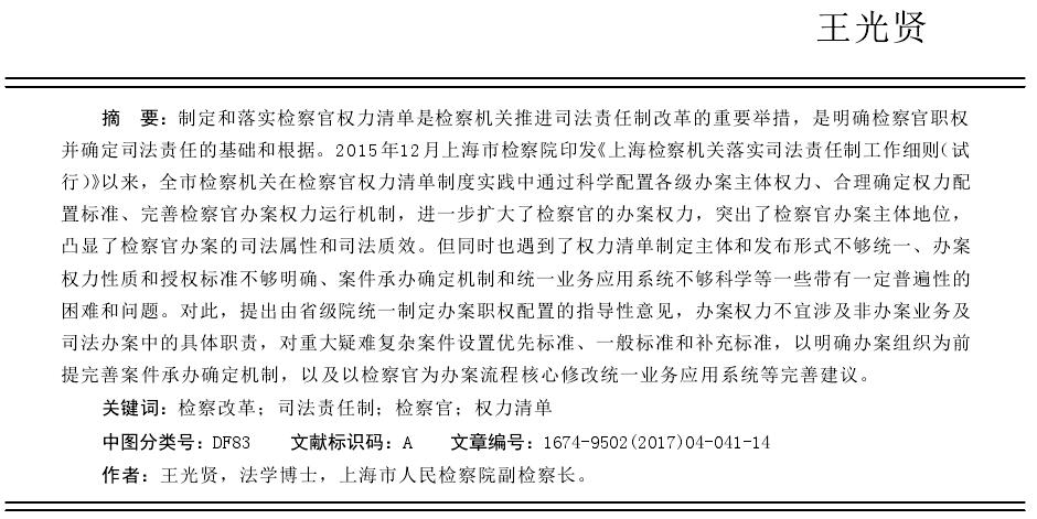 检察官权力清单制度实施及其完善_以上海市检察机关为样本_王光贤