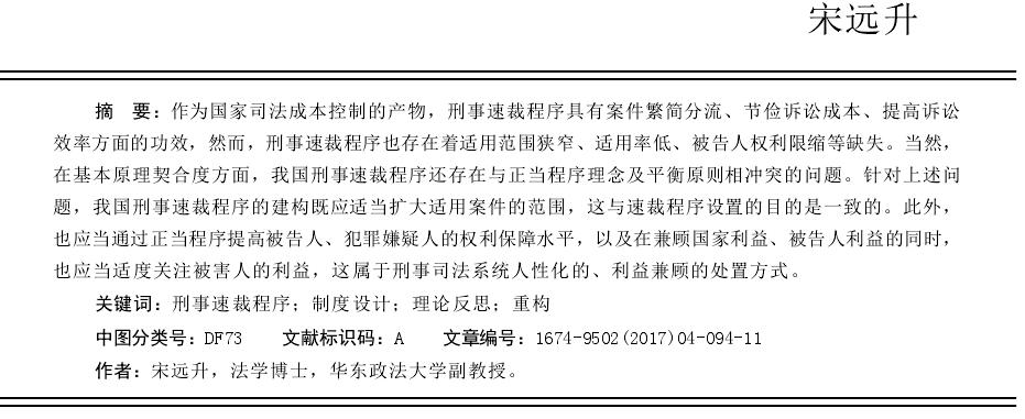 刑事速裁程序的理论反思与重构_宋远升