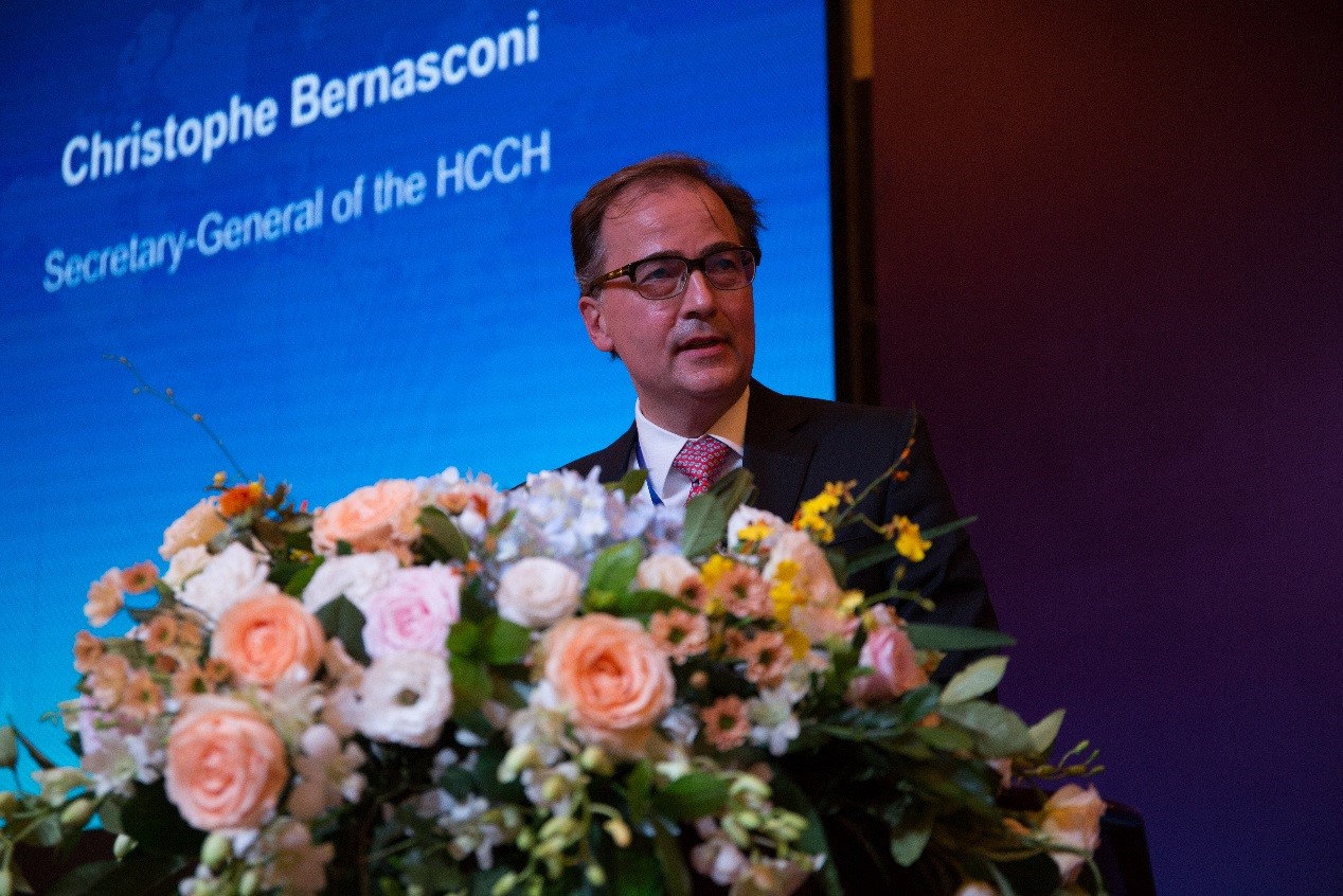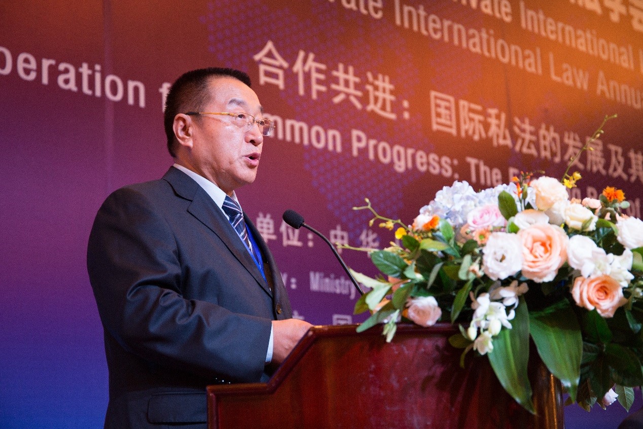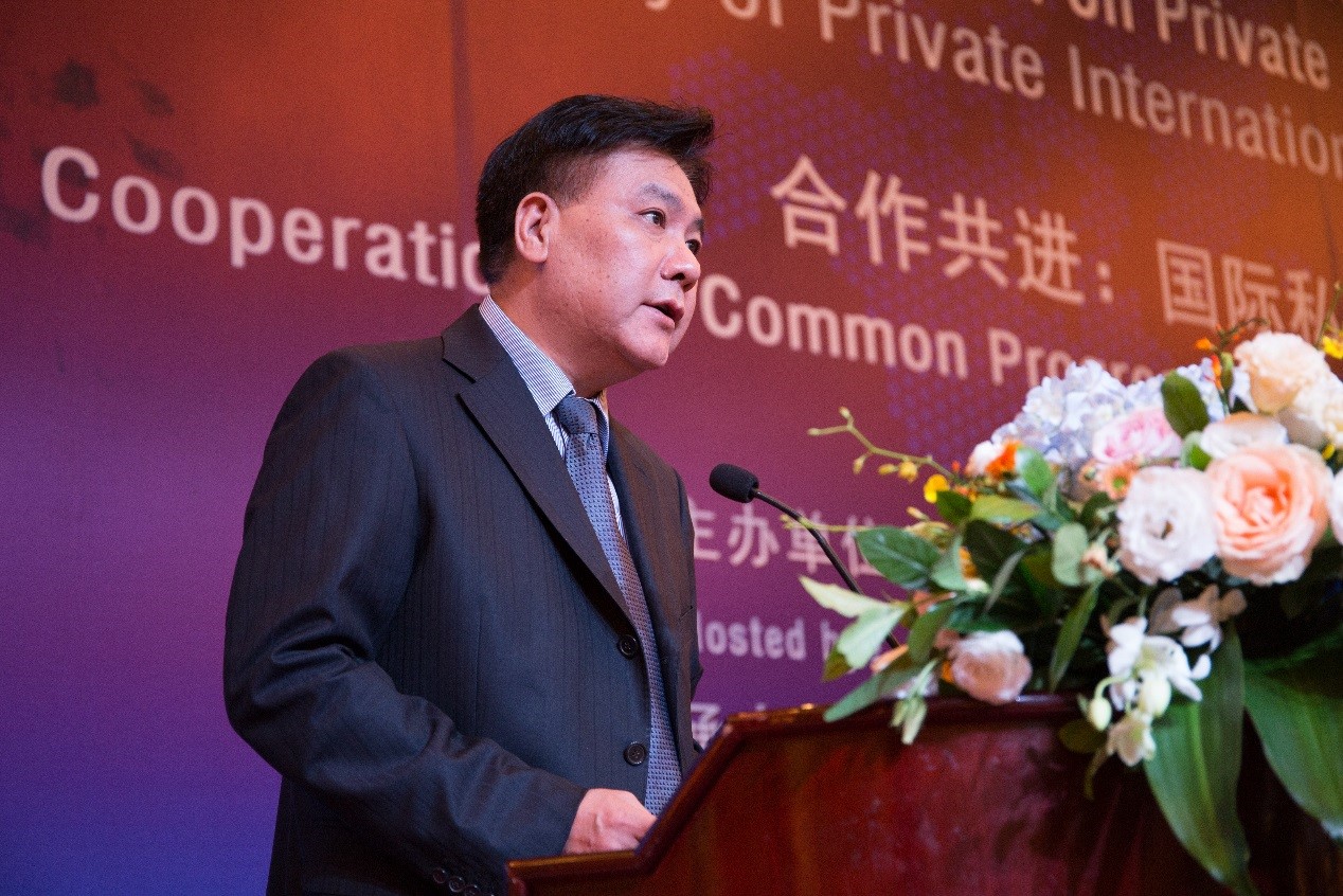 中国法学会副会长张鸣起、最高人民法院审判委员会专职委员刘贵祥、武汉大学党委书记韩进、中国国际私法学会会长黄进、外交部条约法律司司长徐宏、海牙国际私法会议秘书长伯纳斯科尼等出席开幕式并致辞。武汉大学国际法研究所所长、中国国际私法学会常务副会长肖永平教授主持开幕式。