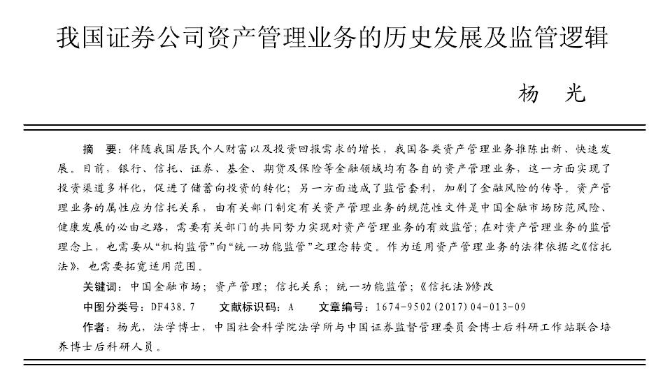 我国证券公司资产管理业务的历史发展及监管逻辑_杨光