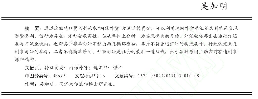 内保外贷套利行为构成逃汇罪之商榷与反思_吴加明
