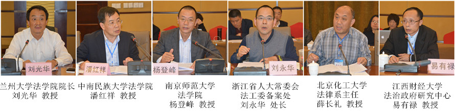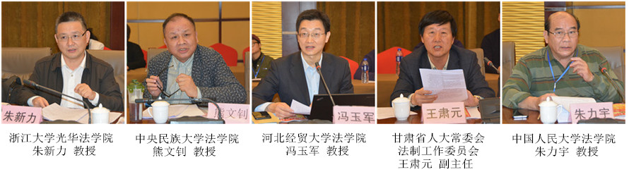 中国法学会立法学研究会常务副会长、中国人民大学法学院朱景文教授,中国法学会法理学研究会副会长、立法学研究会常务副会长、上海市社科联党组书记、上海交通大学凯原法学院沈国明教授,中国法学会立法学研究会副会长、浙江省高级人民法院副院长、浙江大学光华法学院朱新力教授,中国法学会立法学研究会副会长、中央民族大学法学院熊文钊教授,中国法学会立法学研究会副会长兼秘书长、中国人民大学、河北经贸大学法学院冯玉军教授,甘肃省人大常委会法制工作委员会王肃元副主任,中国法学会立法学研究会常务理事、中国人民大学法学院朱力宇教授,中国法学会立法学研究会常务理事、兰州大学法学院院长刘光华教授,中国法学会立法学研究会常务理事、中南民族大学法学院潘红祥教授,中国法学会立法学研究会常务理事、南京师范大学法学院杨登峰教授,浙江省人大常委会法工委备案处刘永华处长,北京化工大学法律系主任薛长礼教授,江西财经大学法治政府研究中心易有禄教授等专家学者参加会议。