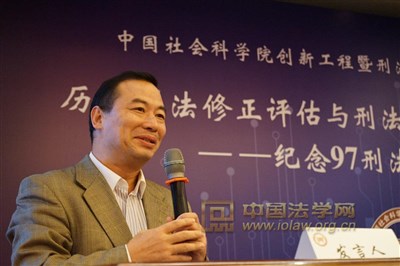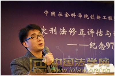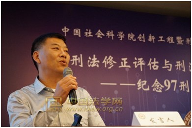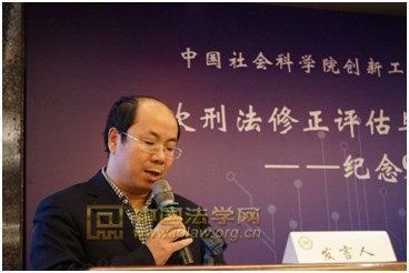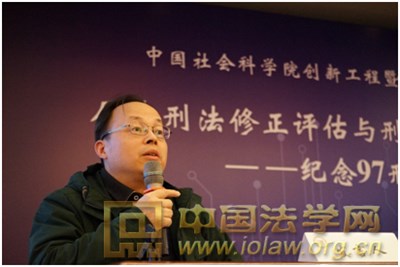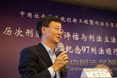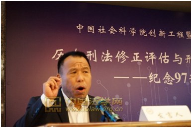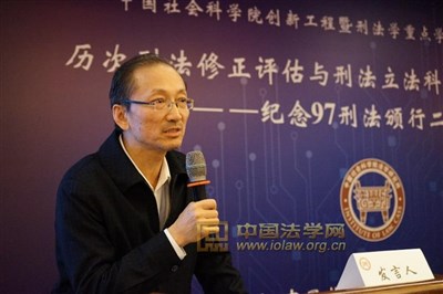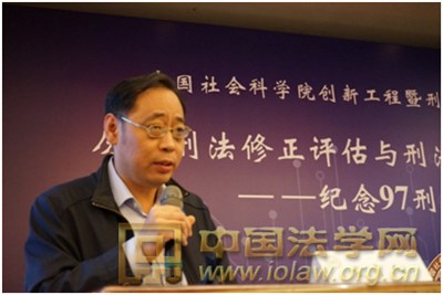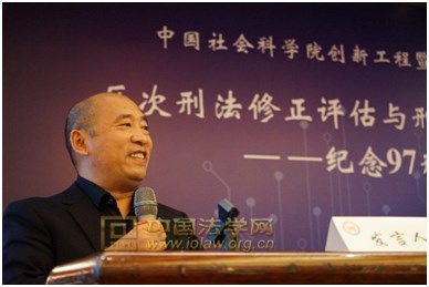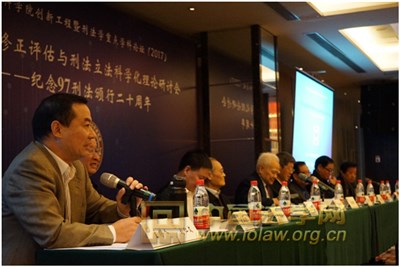 中国社会科学院法学研究所所长李林研究员,最高人民法院副院长李少平先生,最高人民检察院检委会专职委员陈国庆先生,全国人大常委会法工委刑法室主任王爱立先生,中国人民大学法学院荣誉一级教授、北京师范大学刑事法律科学研究院名誉院长暨特聘教授高铭暄先生,北京大学法学院储槐植教授,北京师范大学刑事法律科学研究院院长、中国刑法学研究会会长赵秉志教授,北京大学法学院陈兴良教授,中国社会科学院国际法研究所研究员、中国刑法学研究会常务副会长陈泽宪教授分别在这一阶段作了精彩的主旨发言。大家纷纷表示,97刑法颁行是我国法学界尤其是刑法学界一个具有里程碑意义的事件,对新刑法颁行以来的历次刑法修正作一系统回顾和评估,这对促进我国未来刑法立法的科学化,具有重要意义。可以说,社科院法学所的这次会议选题重要,正当其时。