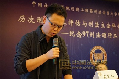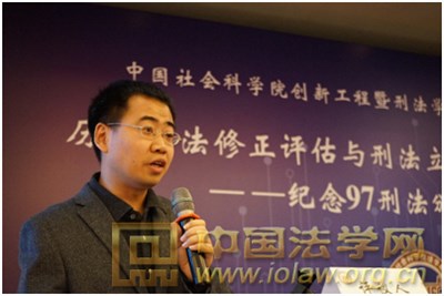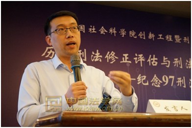 北京师范大学刑事法律科学研究院王志祥教授就“犯罪圈扩张的新思考”、河南大学法学院刘霜教授就“我国犯罪圈的新近扩张及其合理限定”、河北大学政法学院敦宁副教授就“刑法修正犯罪化与谦抑主义的贯彻”、安徽大学法学院储陈城副教授就“刑事立法向法益保护原则的体系性回归”、中国社会科学院法学研究所张志钢助理研究员就“刑法扩张的立法技术及其边界”、中国社会科学院法学研究所贾元博士后就“原因自由行为理论对刑事责任的扩张”等分别作了主题发言。