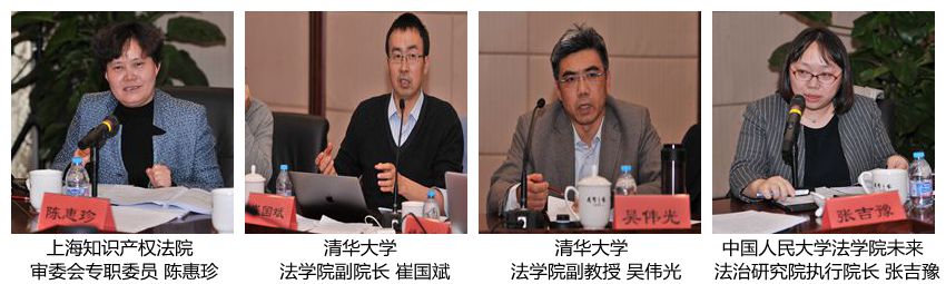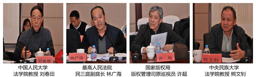 中国法学会知识产权法学研究会会长、中国人民大学法学院刘春田教授,最高人民法院民三庭林广海副庭长,国家版权局版权管理司原巡视员许超,中国法学会立法学研究会副会长、中央民族大学法学院熊文钊教授,中国法学会民法学研究会常务理事、中国政法大学法律硕士学院院长费安玲教授,中国人民大学法学院姚欢庆教授,中国法学会知识产权法学研究会副秘书长、中山大学法学院李扬教授,海南大学法学院石冠彬教授,上海知识产权法院审委会专职委员陈惠珍,清华大学法学院副院长崔国斌副教授,清华大学法学院吴伟光副教授,中国人民大学法学院未来法治研究院执行院长张吉豫副教授,对外经济贸易大学法学院卢海君副教授,中关村知识产权战略研究院执行院长裘安曼,中国音乐著作权协会法律部刘平主任,腾讯公司法务副总监刁云芸,知产力、知产宝联合创始人张璇,金诚同达律师事务所高级合伙人汪涌律师等知识产权法及相关领域的知名专家学者参加会议并发表修改建议。此外,中国法学会知识产权法学研究会名誉会长、中南财经政法大学原校长吴汉东教授,华东政法大学知识产权学院王迁教授、中央民族大学法学院熊文聪副教授提交了书面意见。