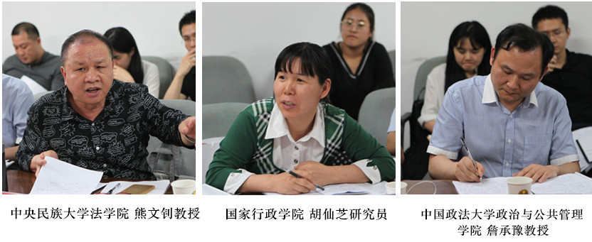 中国政法大学法治政府研究院院长王敬波教授作为本项目首席专家,代表项目组从评估范围、评估方法、评估原则、评估指标体系和评估结果处理方式等方面对评估方案做了详细介绍和阐释。北京市第四中级人民法院副院长程琥研究员、中国人民大学公共政策研究院执行院长毛寿龙教授、北京大学政府管理学院燕继荣教授、中央民族大学法学院熊文钊教授、国家行政学院胡仙芝研究员、中国政法大学政治与公共管理学院詹承豫教授、南开大学法学院宋华琳教授、中央民族大学法学院张步峰教授等法学、公共管理、行政管理领域的知名学者和上海市编办副主任金跃明等来自北京市、上海市、哈尔滨市编办、法制办、公安局、民政局、住建委等实务部门的专家共20余人结合各地清理工作的进展、取得的成效和面临的问题,从现有评估和清理指标的进一步完善、评估和清理对象的精准界定、评估和清理目标的清晰明确、评估和清理方法的科学可操作等不同方面进行了充分讨论、深入交流,达成了诸多共识,使下一步工作的方向和焦点更为明确。