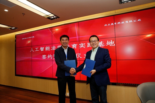 北京理工大学法学院与北大英华科技有限公司携手共建“人工智能法学教育实践基地”举行了签约仪式。北京理工大学“人工智能法学教育实践基地”将与北大法宝开展全面合作,共同探索法律人工智能的应用创新,推进法律大数据与人工智能技术在法律行业的深度应用,共同培养复合型高层次法律人才。