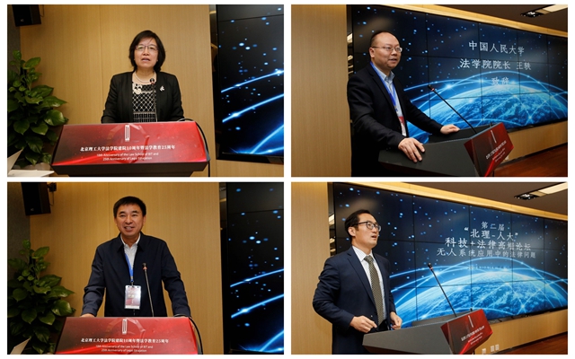 来自全国科技与法律领域的各界专家、学者100多人齐聚北京理工大学,畅谈“无人系统应用中的法律问题”,就前沿科技发展与未来研发和应用中可能涉及的法律问题进行了深度研讨。学校纪委书记杨志宏、中国法学会研究部副主任彭伶、中国人民大学法学院院长王轶、我校法学院院长李寿平参加了论坛并致辞,我校法学院党委书记张瑜参加了论坛。开幕式由北京理工大学法学院副院长于兆波主持。
