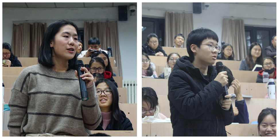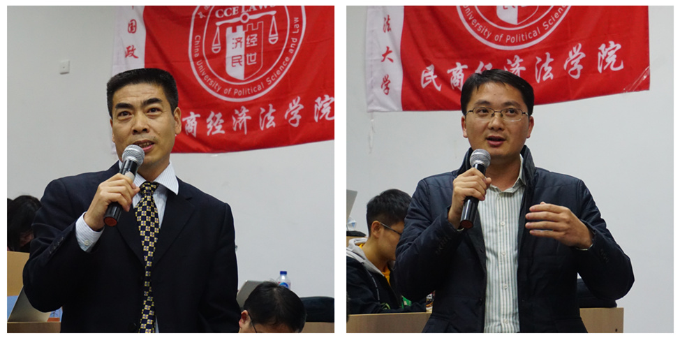 提问交流环节,法大两位本科生,针对商业模式的理解进行提问,时建中教授解释,复杂遥远的商业概念可以通过不断解构,来实现与法律关系的对应。