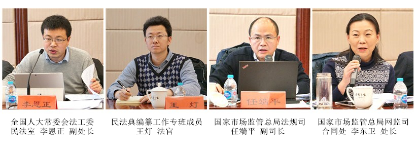 本次立法专家咨询会受到了中央有关部门的高度重视和大力支持。全国人大常委会法工委民法室李恩正副处长、民法典编纂工作专班成员王灯法官;国家市场监管总局法规司任端平副司长、网监司合同处李东卫处长参加了研讨会。会议开始后,李恩正副处长介绍了《民法典•合同编(草案二次审议稿)》的立法背景和主要考虑。