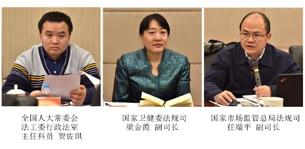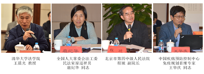 中国卫生法学会副会长、清华大学法学院王晨光教授,全国人大常委会法工委民法室原巡视员扈纪华同志,北京市第四中级人民法院程琥副院长,中国疾病预防控制中心免疫规划首席专家王华庆同志,中国法学会行政法学研究会秘书长、中国政法大学法治政府研究院院长王敬波教授,中国法学会行政法学研究会常务理事、北京大学法学院沈岿教授,同济大学法学院/知识产权学院副院长、医药法律与知识产权研究中心主任宋晓亭教授,中国法学会行政法学研究会常务理事、南开大学法学院副院长宋华琳教授,国药集团封多佳副总经理,公安部治安管理局宋飞副处长,中国生物技术股份有限公司杨汇川副总经理,中国卫生法学会理事、中国社会科学院法学研究所董文勇副研究员,河北大学政法学院尚海龙副教授,中国医药商业协会陈昌雄副会长,中国卫生法学会常务理事、北京市华卫律师事务所郑雪倩主任,北京市律师协会民法专业委员会主任、北京市陈志华律师事务所陈志华主任等相关领域的知名专家学者参加会议并发表修改建议。