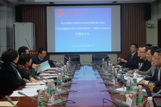 2019年2月15日,中国政法大学民商经济法学院李永军教授主持的国家社科基金重大项目“民法典编纂的内部与外部体系研究”开题论证会在中国政法大学学院路校区顺利召开。国家社科基金重大项目“民法典编纂的内部与外部体系研究”课题组开题专家、课题组负责人、子课题负责人、部分课题组成员等近30人参加会议。