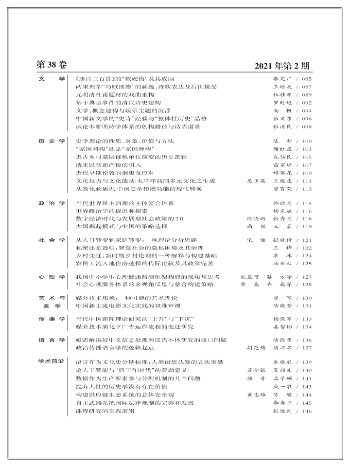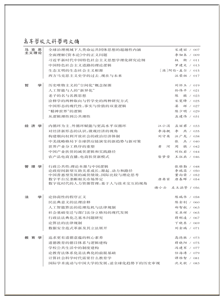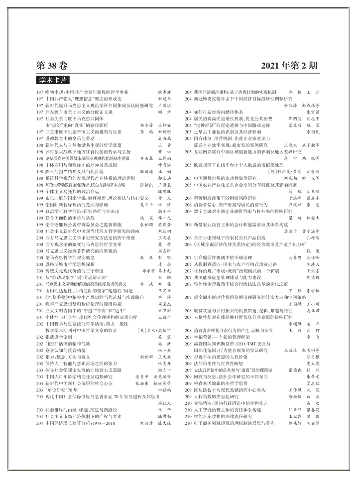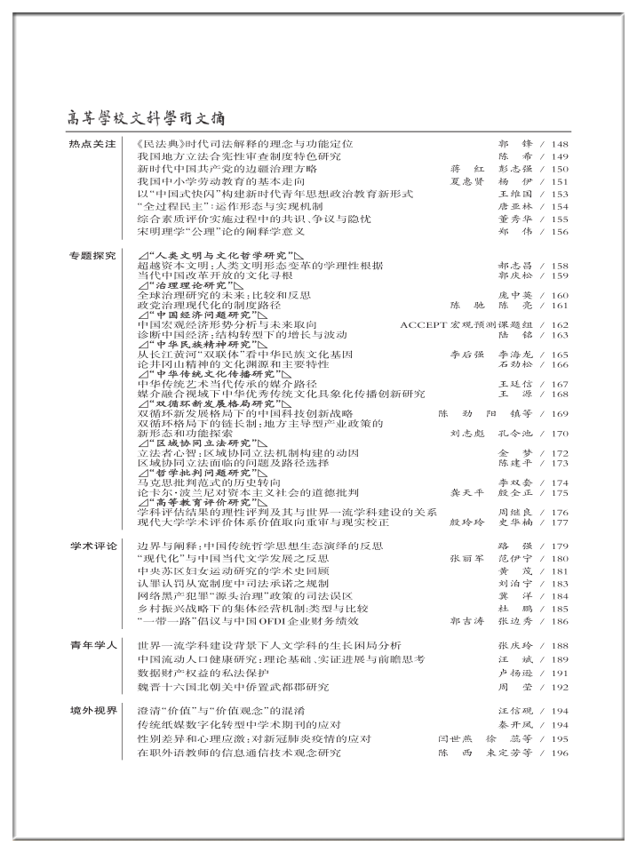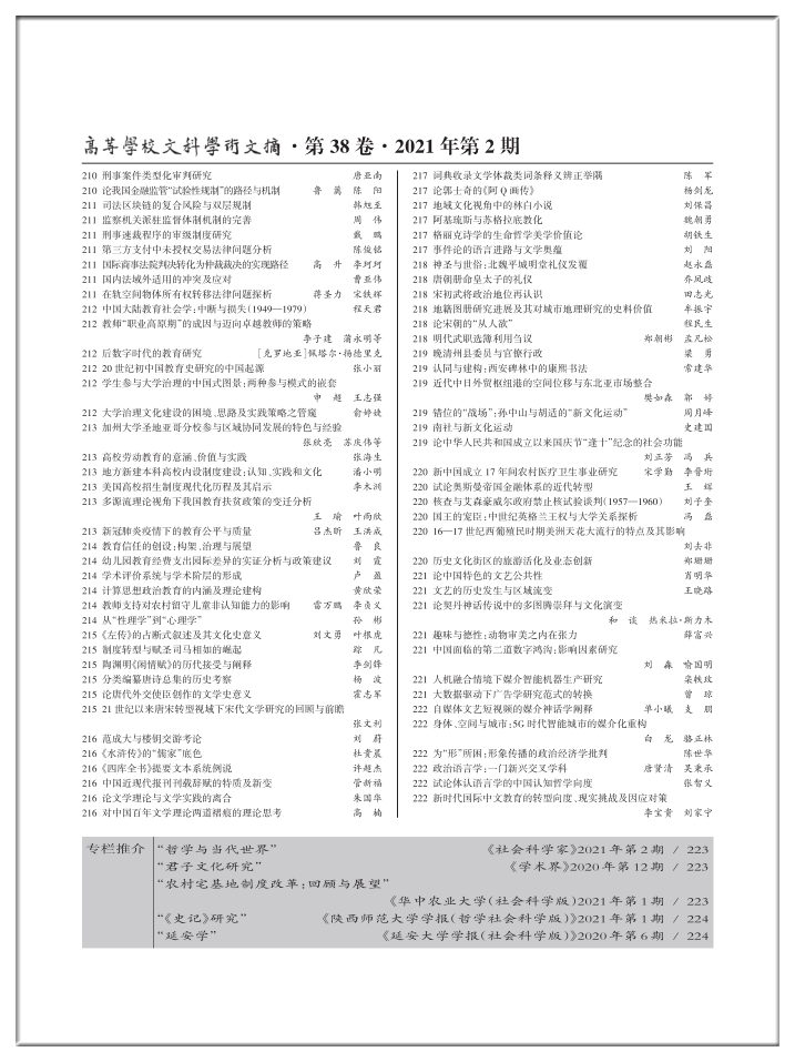 《高等学校文科学术文摘》2021年第2期目录