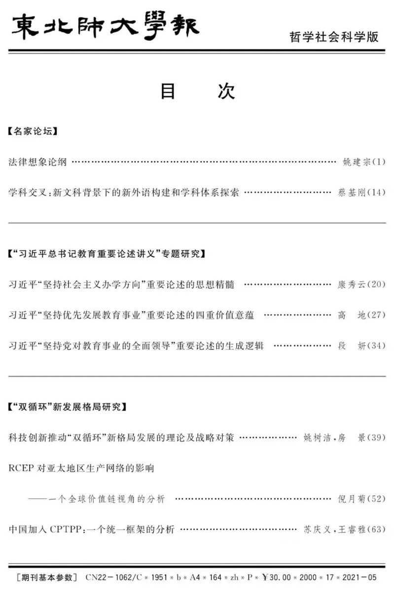 《东北师大学报》2021年第3期目录及摘要
