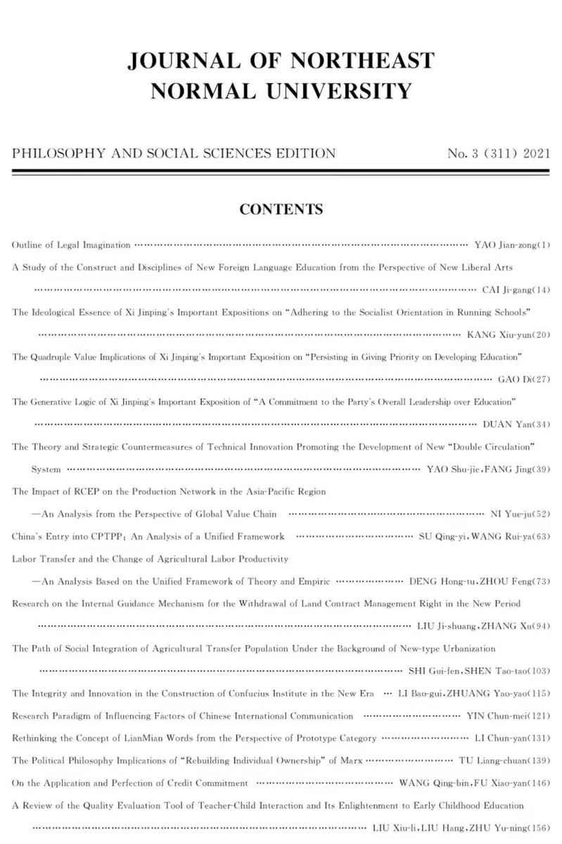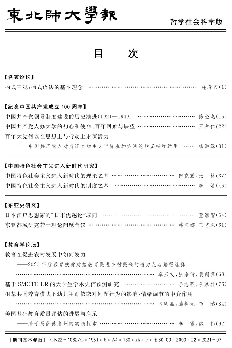 [原刊信息] 李婧.中国特色社会主义进入新时代的制度之基[J].东北师大学报(哲学社会科学版),2021(04):46-53.