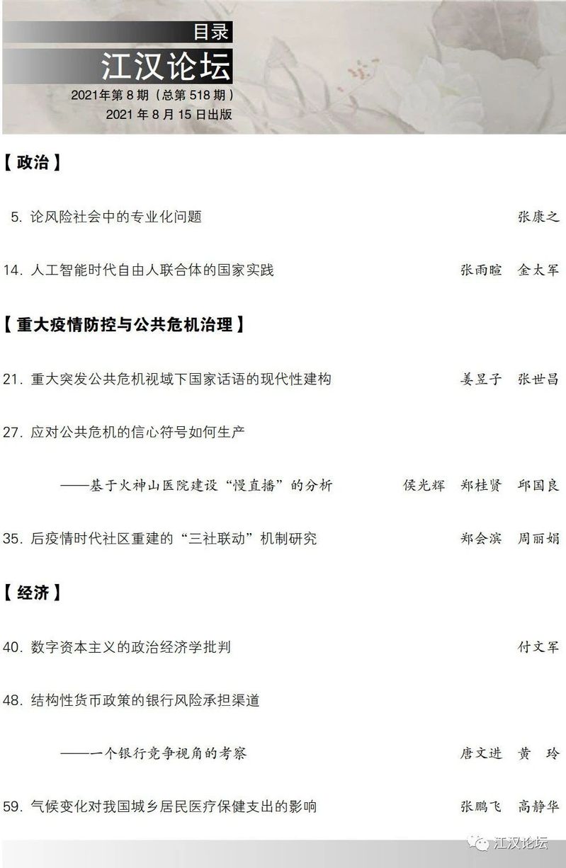 《江汉论坛》2021年第8期目录及文章摘要