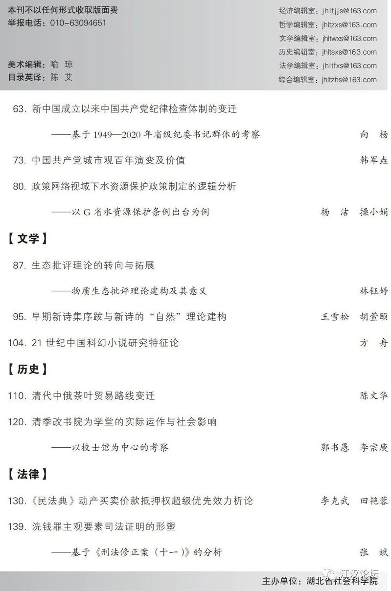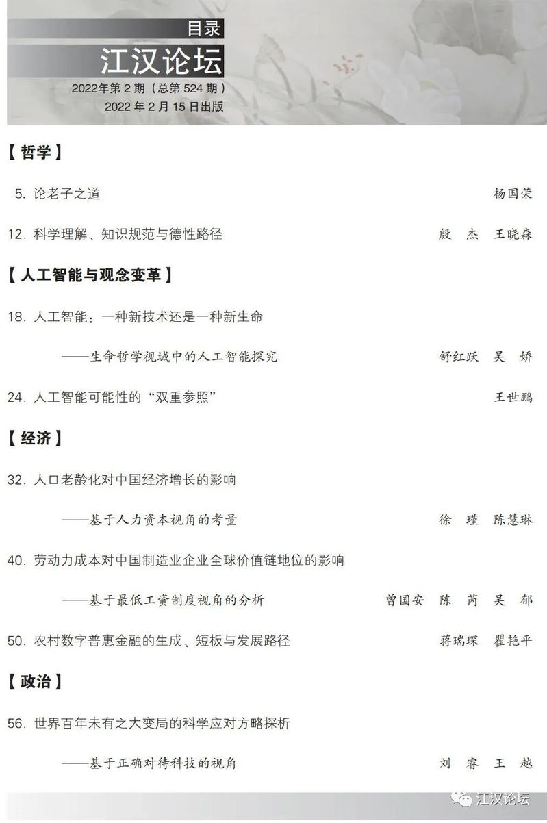 《江汉论坛》2022年第2期目录及文章摘要
