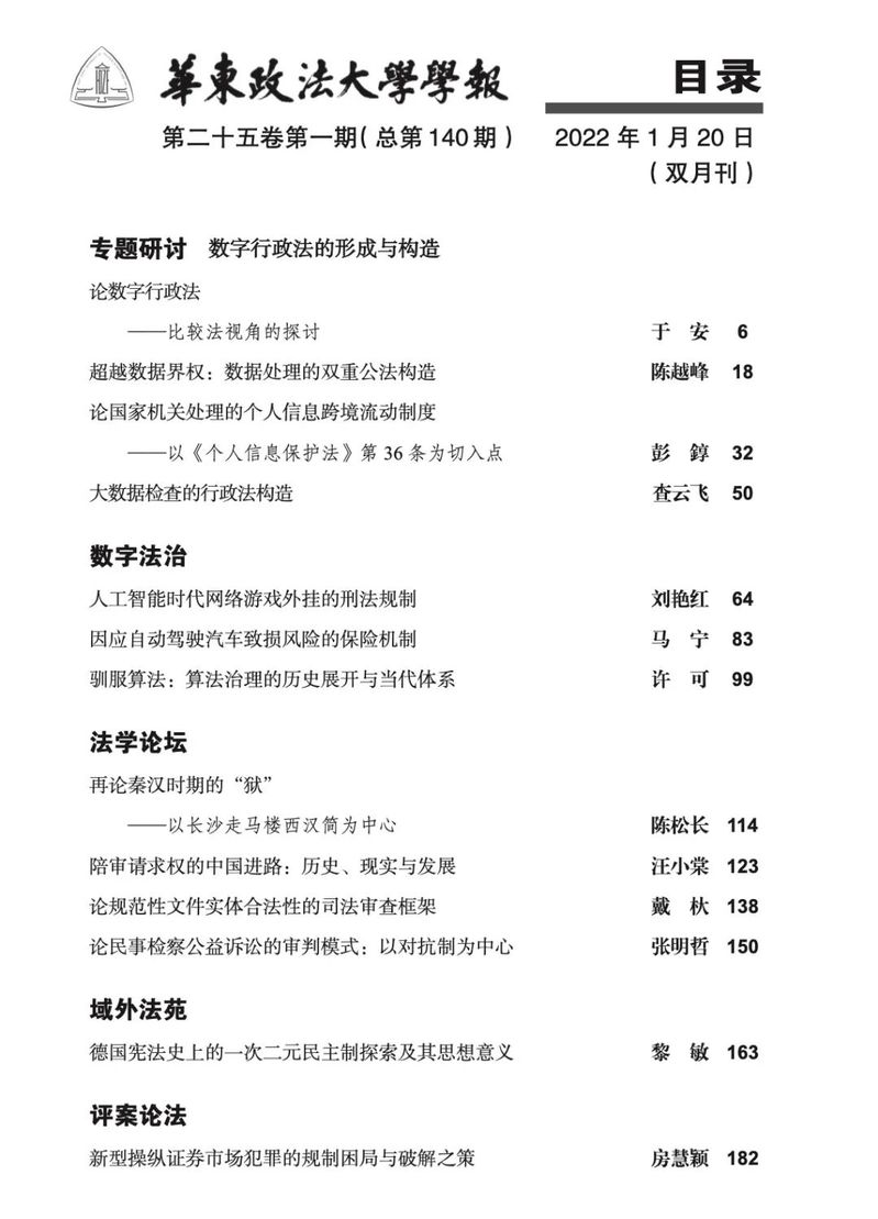 《华东政法大学学报》2022年第1期要目