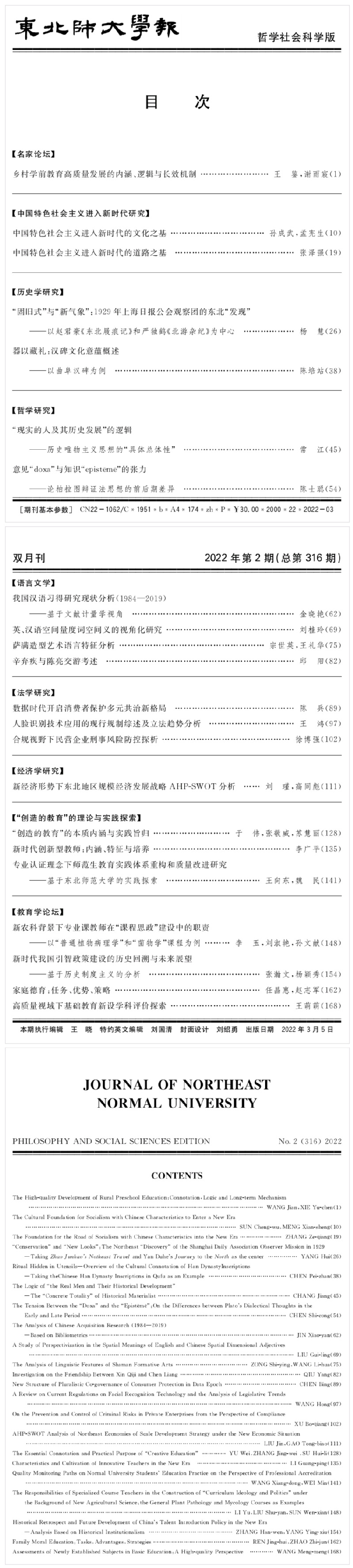 《东北师大学报》2022年第2期目录及摘要