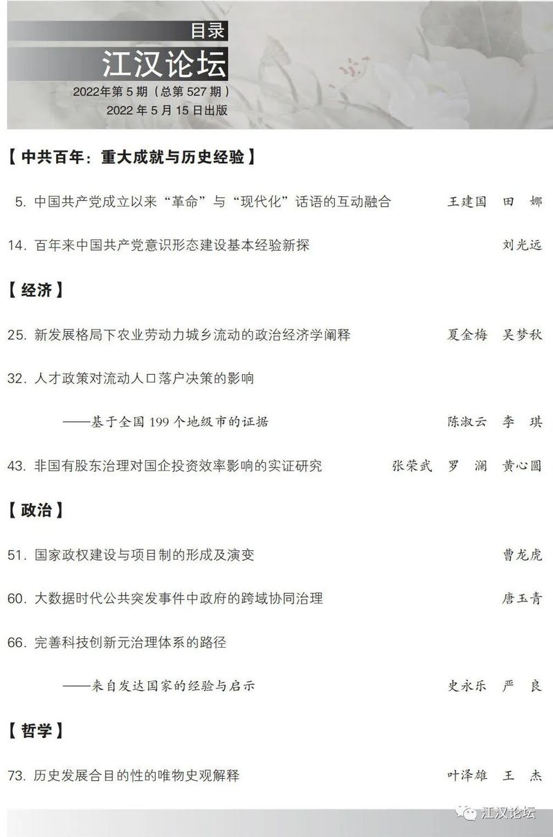 《江汉论坛》2022年第5期目录及文章摘要