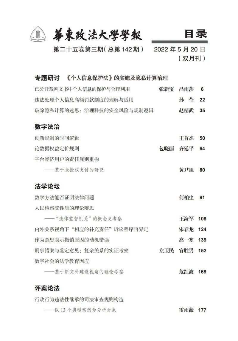 信息来源: 华东政法大学学报 微信公众号 发布日期: 2022-05-23 浏览次数: 10