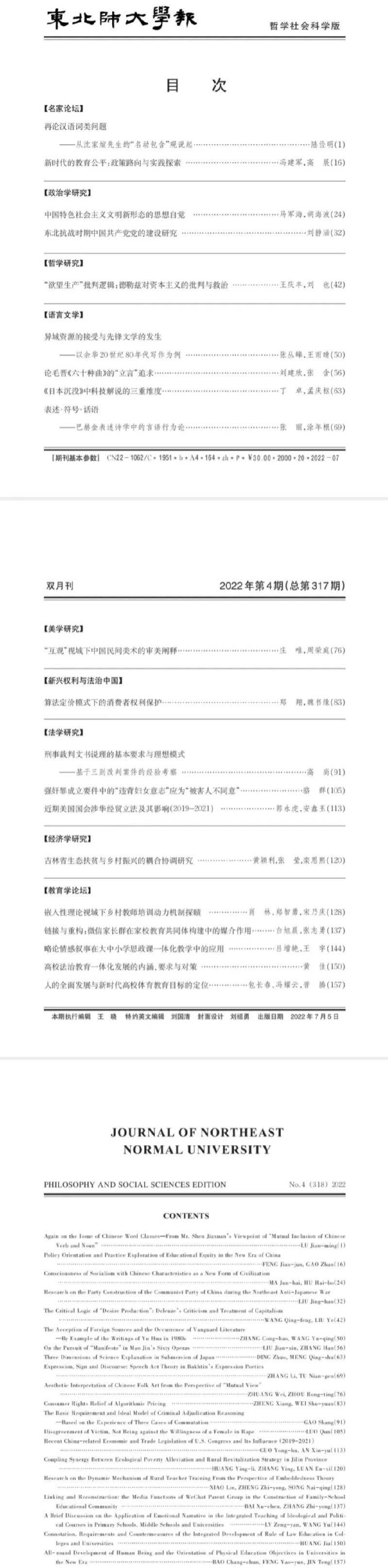 《东北师大学报》2022年第4期目录及摘要