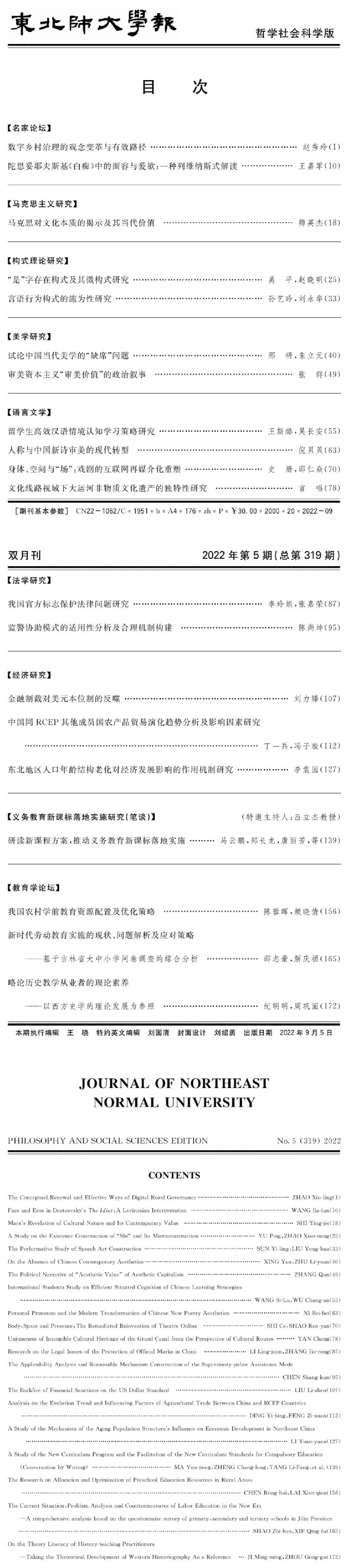 《东北师大学报》2022年第5期目录及摘要