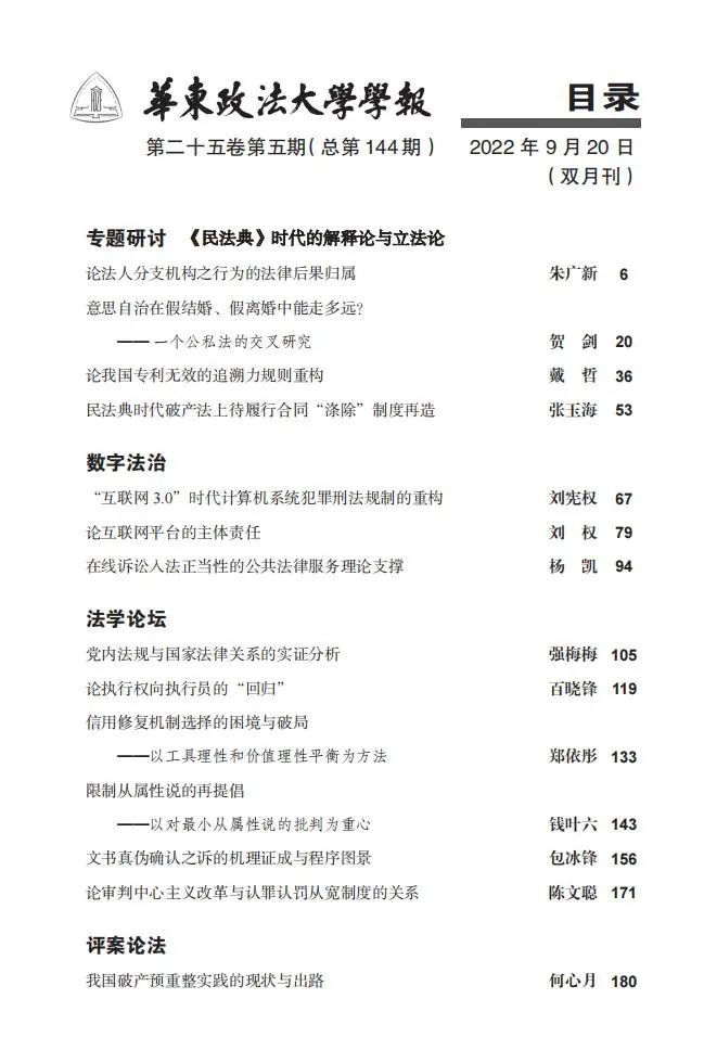 信息来源: 华东政法大学学报 公众号 发布日期: 2022-09-30 浏览次数: 10