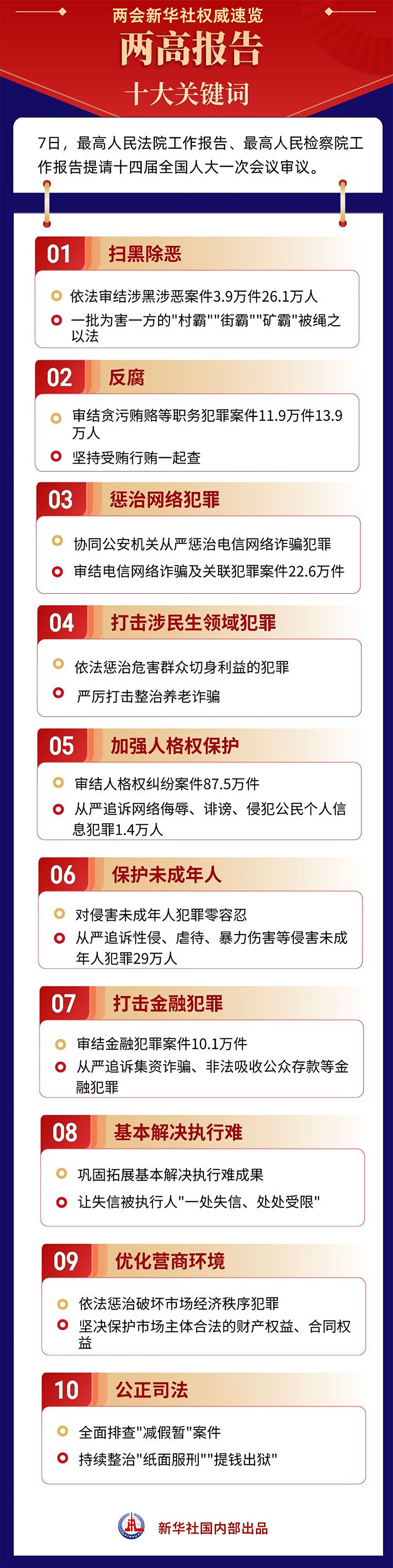 新华社北京3月7日电 题:十大关键词解读两高报告